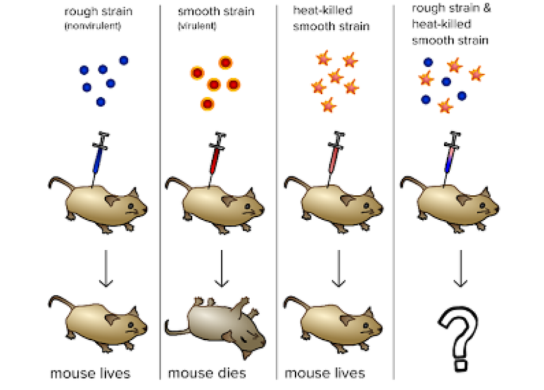 그리피스는 이에 대해 "살아있는 S형에게 독성을 주는 유전자가 있는데,