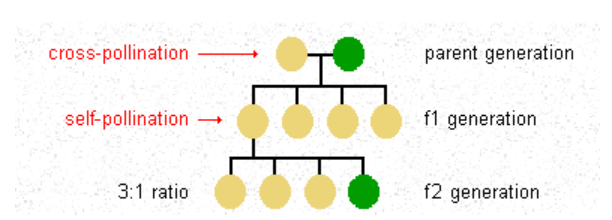 왜 손자(F2)가 부모(F1)와는 다르게 생겼으면서 조부모 (P)를 닮는 것인지는 알려지지 않았을 때니까.